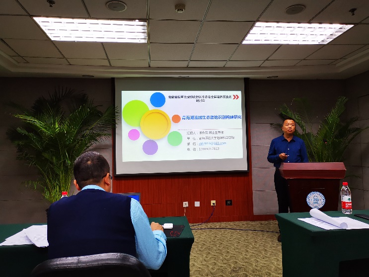 上午,在何春阳教授的主持下,首先进行的是特邀学术报告环节,由青海师范大学陈克龙教授作题为“青海湖流域生态源地识别构建研究”的报告。他主要介绍了青海师范大学相关团队在青海湖流域就植被和土壤对环境变化响应开展的一系列研究,以及生态监测站点的具体工作。