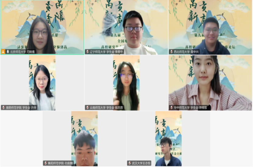 校研究生会代表杜宜轩同学在致辞中希望各高校学生会、研究生会借本次论坛机会加强合作交流,启发新思路、开拓新局面,携手探索改革创新,不断提升同学满意度、大局贡献度、社会认可度,让地理学学生工作彰显时代特色、凸显学科内涵、满足学生需求、实现学生引领,助力学子成长和学科发展。