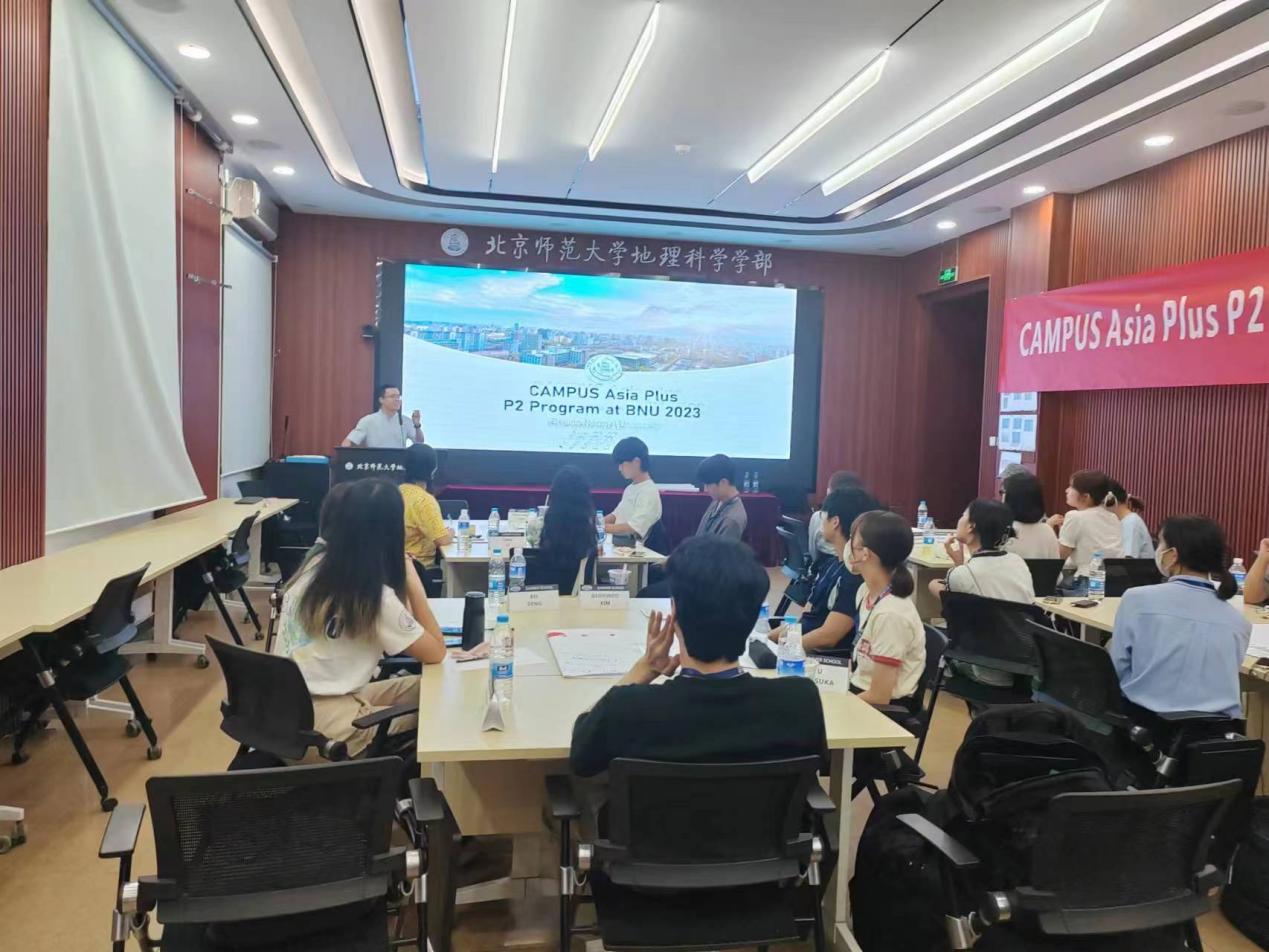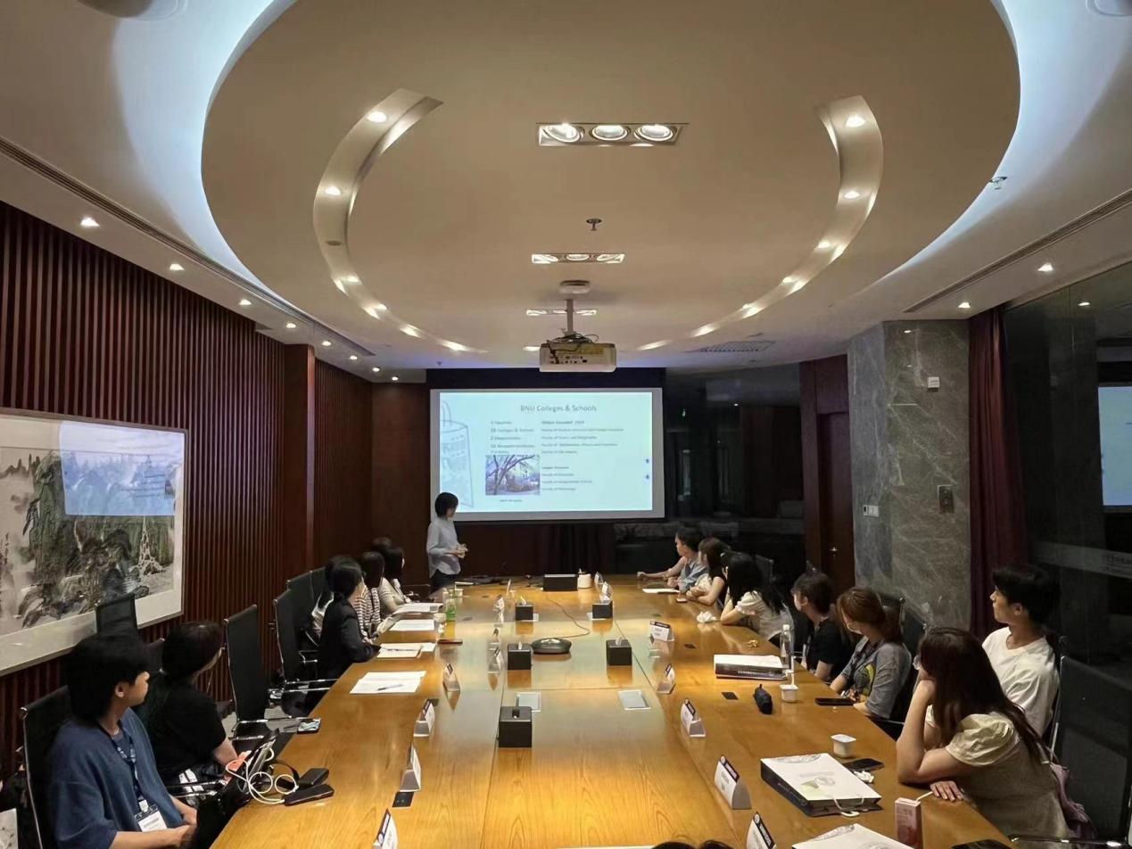 2023年8月24日8:00,项目举行开班仪式,博彩网址 党委副书记陈蓉蓉老师、外事秘书刘玉娇老师、合作学校的带队老师及20位学生参加了开班仪式。陈蓉蓉老师代表博彩网址 向参加本次短期项目的学生及带队老师表示热烈欢迎,询问了住宿及日常生活的相关事宜,刘玉娇老师就学校及博彩网址 的历史、现状和发展进行了简要介绍,并说明了注意事项。为促进交流,经过短暂的商讨后,学员们分成了四个小组,每组都包括中、日、韩的学生,便于后续的课程讨论和出行参观。大家对北京师范大学表现出很高的热情,期待在接下来的几天中有难忘的学习经历。