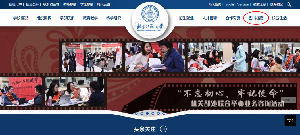 ● 登陆北京师范大学官网“//www.bocaisites.com/”,找到“图书档案”;