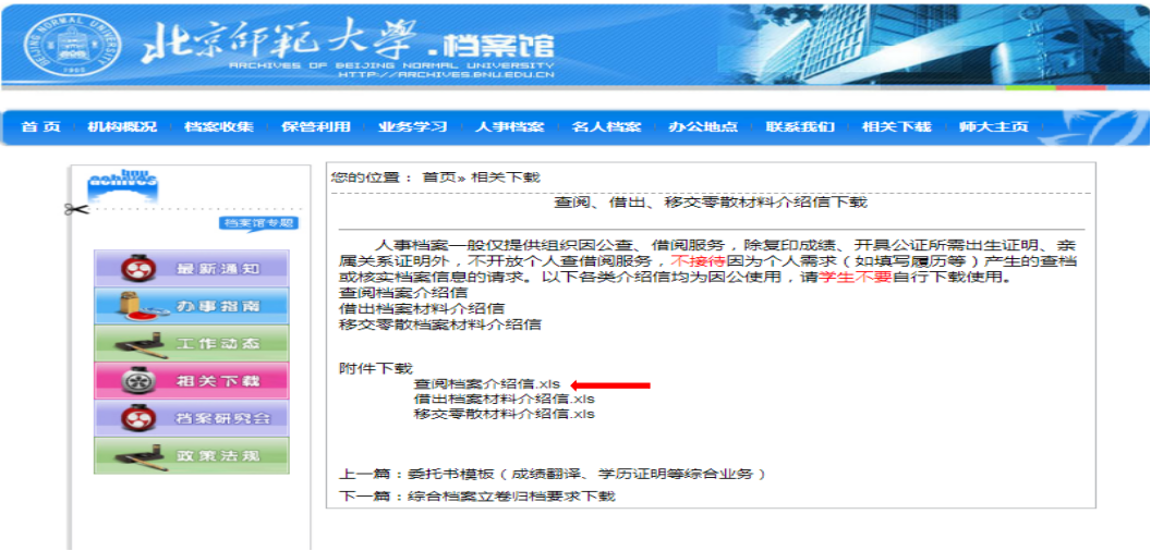 ● 若查阅档案,需下载“查阅档案介绍信”;若需要借出档案,则点击下方“借出档案材料介绍信”
