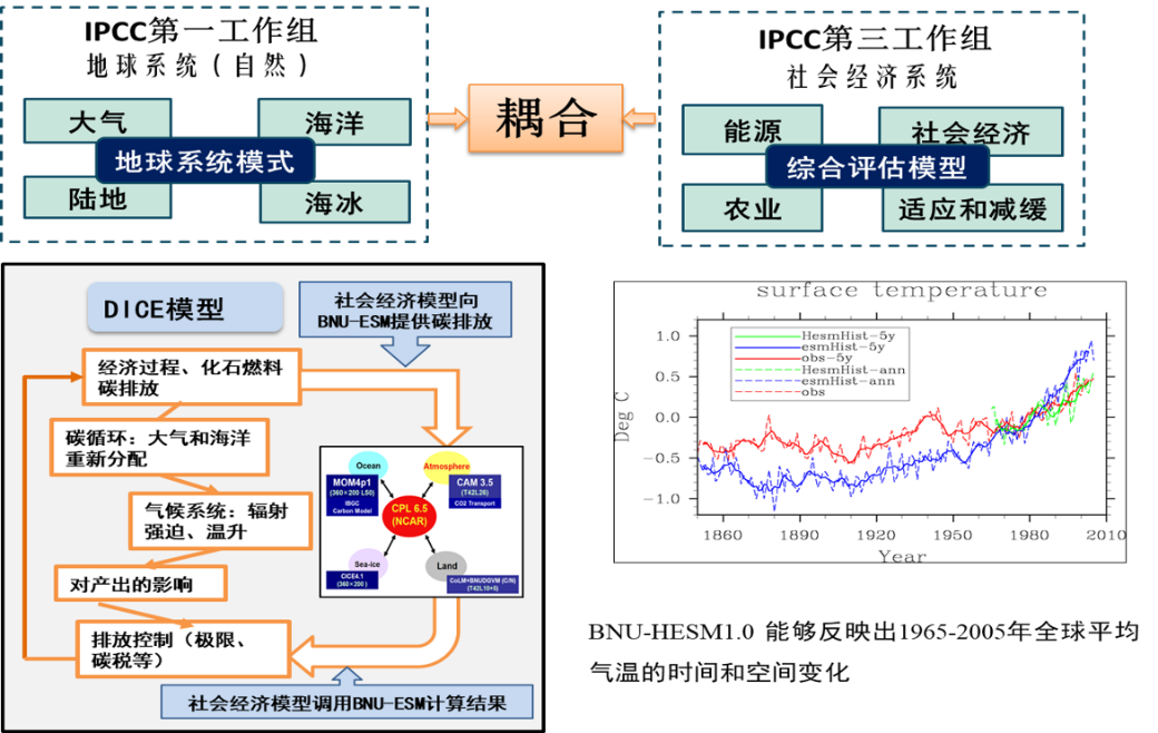"人-地系统动力学模型的构建与应用" 是国家急需的创新项目,经十余年持续攻关,研究揭示了气候变化与社会经济活动相互影响的机理和路径,突破了社会经济模型与地球系统模式耦合模拟中时间尺度和空间尺度不匹配的障碍,在国内首创了两类模型双向耦合的技术和方法,率先构建了人-地系统动力学模型(HESM ),实现了同一框架下模型间的关键变量传递和反馈,有效解决了两类模型独立发展所导致的耦合难题,实现了气候变化-碳循环-社会经济活动 的双向耦合模拟。这为人类活动与地球系统相互作用过程的研究提供了一种创新性的方法,它不仅拓展了地球系统模式的发展方向,而且对气候变化影响评估和可持续发展政策的制定具有支撑意义。