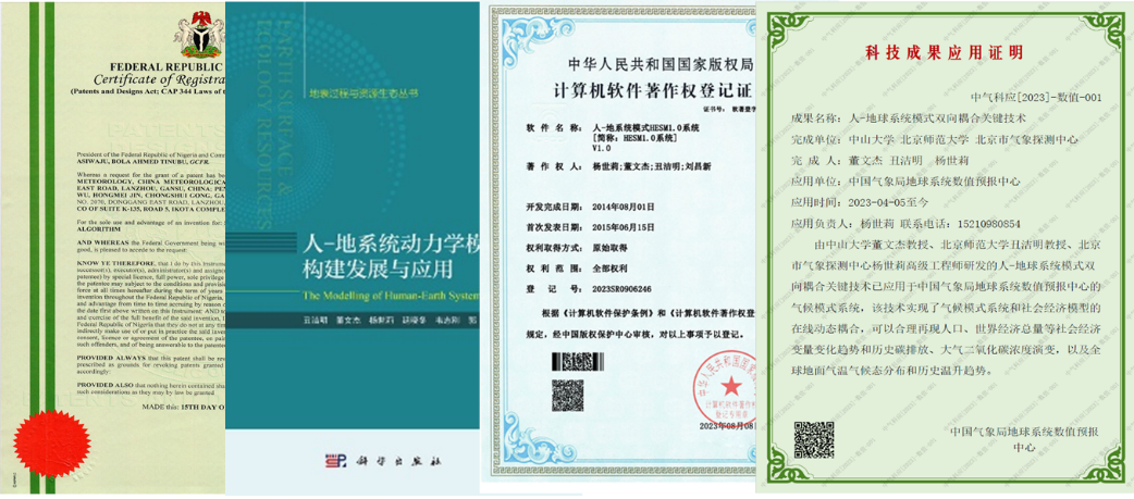 基于人-地系统动力学模型(HESM)开展的气候变化影响评估,形成了综合评估人类活动气候后果的新范式,已经推广到土地利用、防灾减灾、生态保护、粮食安全、极端气候事件影响、“一带一路”及国际冲突影响等研究中 ,取得了显著成果,发表论文数十篇,专著一部。