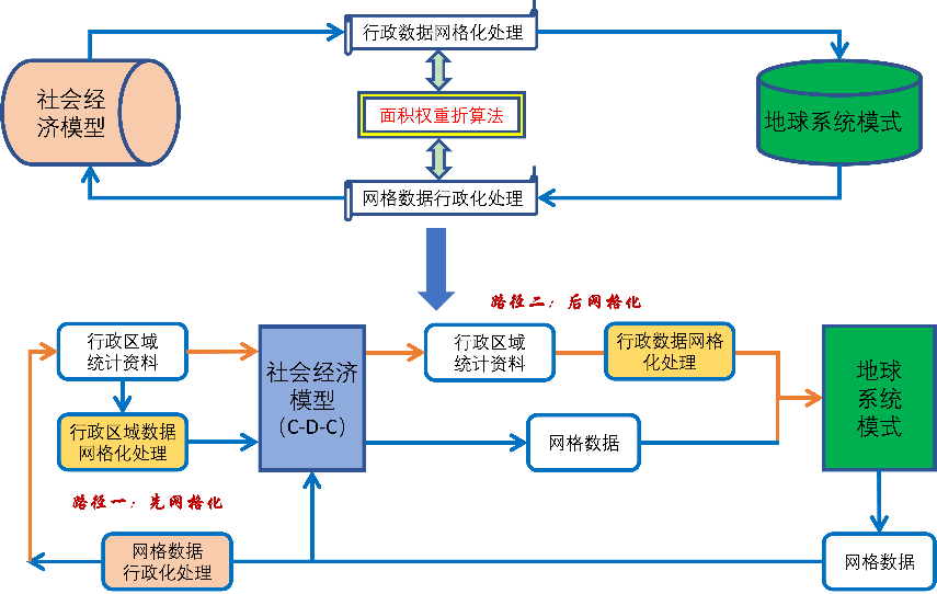(2)人-地系统动力学模型(HESM)关键技术。突破了社会经济模型与地球系统模式耦合模拟中存在的时间尺度和空间尺度不匹配的障碍。