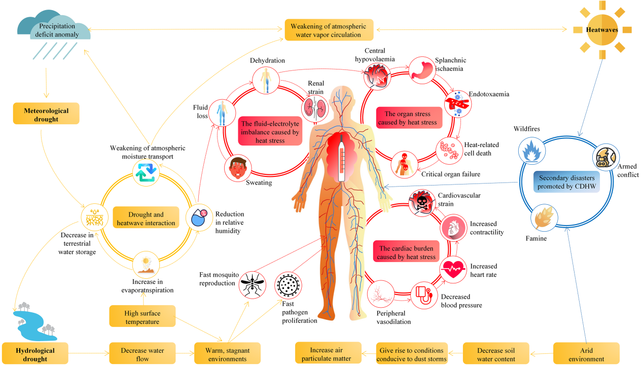 图1.  复合干旱热浪事件对人类健康的影响机制