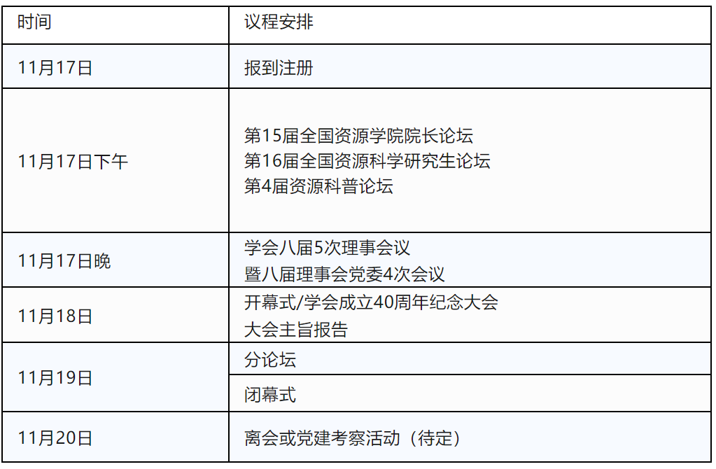 2023年是中国自然资源学会成立40周年,会议期间,还将举办纪念中国自然资源学会成立40周年活动。