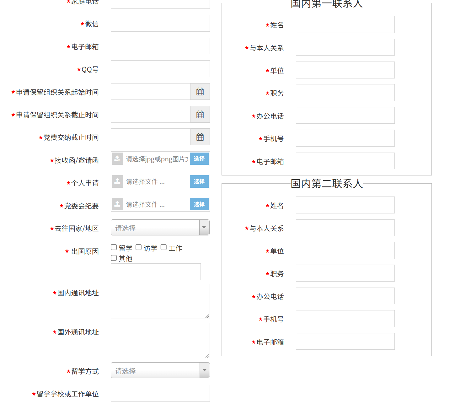 操作:左侧的“党员基本信息—出国(境)申请组织关系暂留”信息