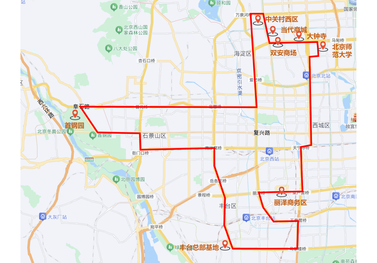 在前往首钢园的途中,老师们引导学生们观察沿线地标与景观,并为同学们介绍产业变迁动态。途经的中关村西区作为科技创新和高新技术产业的重要基地,凭借其在地理位置、科教资源、创新环境和基础设施等方面所具有的优势,吸引了大量高新技术企业和人口在此集聚,推动了区域创新网络的形成与发展。随着中关村西区不断发展,周边地区的商业环境和服务需求也迫切需要升级,当代商城和双安商场为了适应数字经济时代商业竞争正在大刀阔斧地更新改造中。