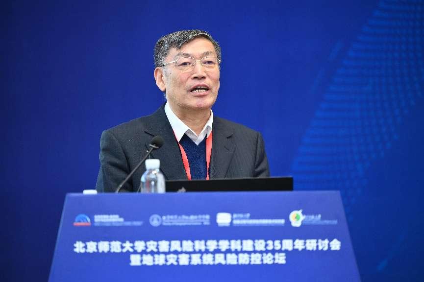 会上,史培军对北京师范大学灾害风险科学学科建设35周年进行了回顾和展望,从人才培养、科学研究、社会服务、国际合作与交流等方面报告了取得的重要进展,重点阐述了重大自然灾害监测与综合评估技术体系、寒旱区环境变化研究与防沙治沙示范、中国与世界自然灾害风险系列地图集、中国自然灾害和农业保险系列区划、大都市区多灾种综合灾害风险防控、城市扩展过程的生态环境风险、气象灾害实时预测预警、气象水文集合预警、特重大灾害空天地一体化协同监测应急响应创新技术、人—地系统动力学模拟器(HESM)等标志性成果。同时,从“紧盯国家科技计划与自然科学基金资助优先领域,深化灾害相互作用理论研究,加强地球灾害系统风险研究,科学评估全球气候变化与人类活动耦合下的灾害效应与人口和经济风险,加强地球多灾种与人类活动耦合下的群聚、群发、链发与复合灾害机理过程研究和开展巨灾综合风险评估,开展多空间尺度人地协同设计、实现除害兴利并举”等方向展望了灾害风险科学研发与综合灾害风险防控的重点领域。