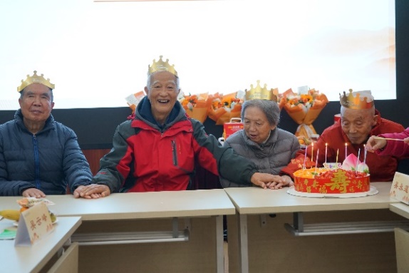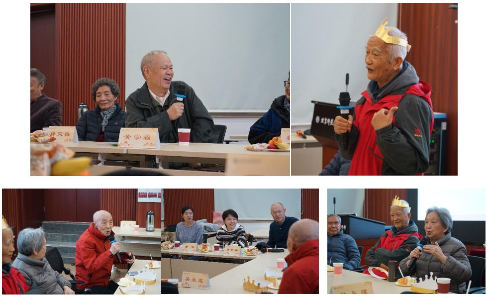 全体参会老师合影后,活动进入温馨感人的祝寿环节。大家共同为今年迎来“上寿”与“米寿”的四位老教师庆贺,祝福吴永莲老师、郑新生老师上寿康健、福泽绵长;李容全老师、程连生老师米寿安康、松柏常青。四位老师一同吹蜡烛,全场同唱生日祝福歌,现场暖意融融、幸福满满。