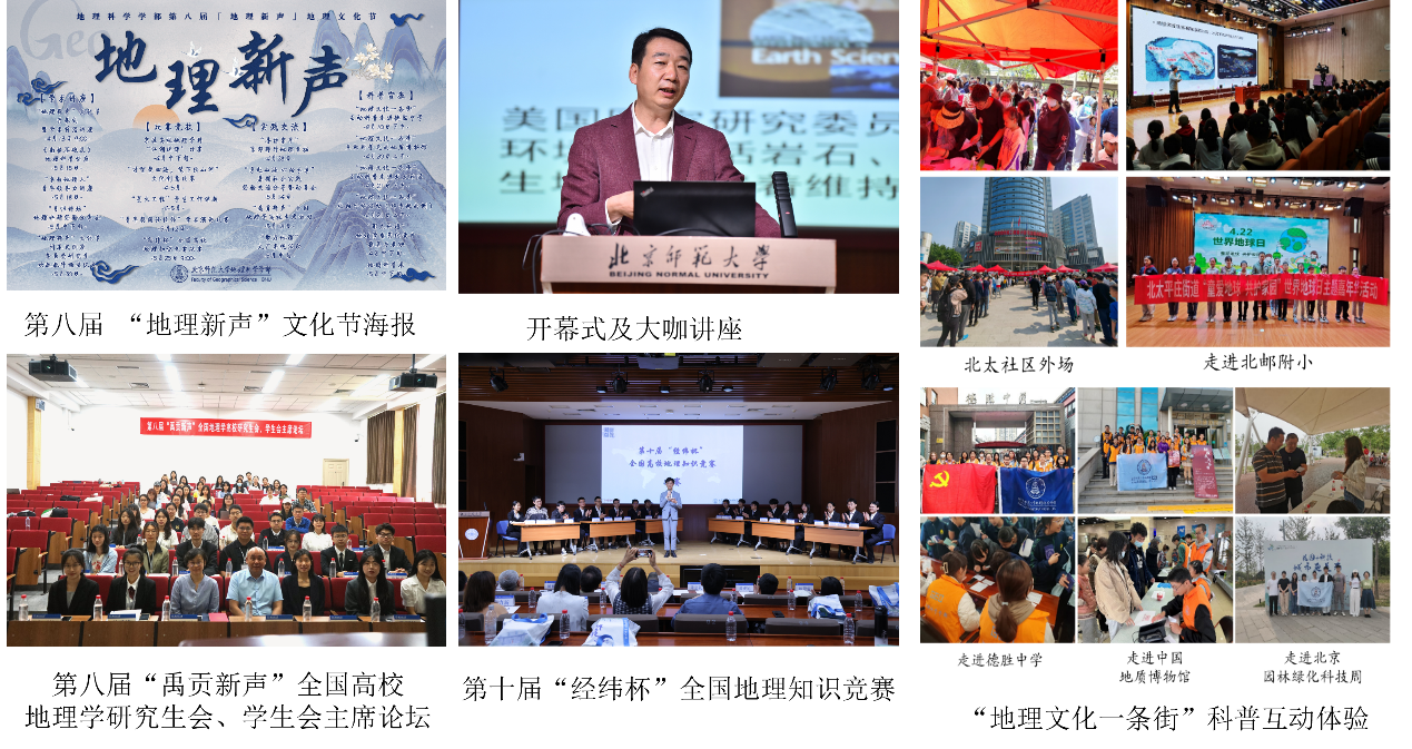 在组织固本培元方面,打造品牌,传播师大声音。地理新声文化节连续举办八届,吸引全国40余所高校参与,累计6万人次。“地理文化一条街”科普活动走出校园,走进中小学、社区、博物馆、北京科技周,将美丽中国的种子播撒在民众心中,参与累计3000余人。