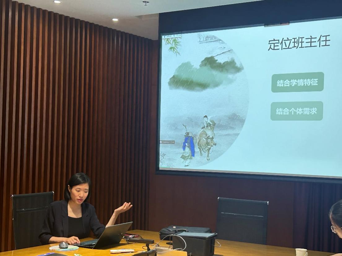 会议第三部分,陈蓉蓉老师从本学期班长调研数据分析和往年工作案例入手,从工作定位、业务提升、携手成长三个层面进行了新生班主任工作介绍。包括“班级工作三要素”,利用好“三支队伍”、“三种能力、“三套材料”;学校和博彩网址 针对班主任团队建设所提供的支持和奖励;以及学生在不同成长阶段的阶段性任务等,强调了博彩网址 建设有能力有情怀有担当的学习型辅导员队伍的工作理念。