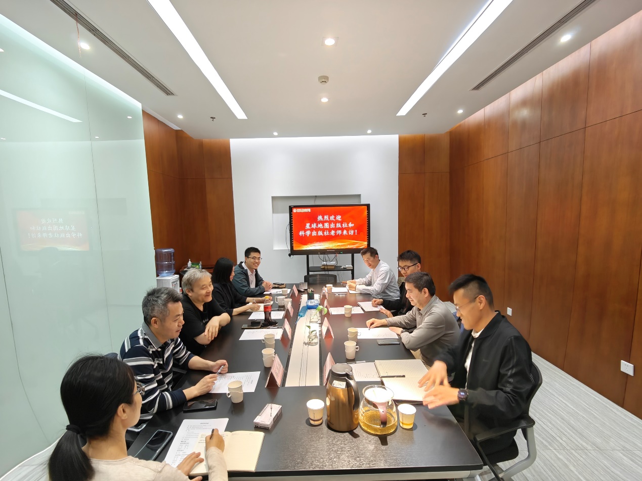 蒋卫国副部长对星球地图出版社和科学出版社一行来访表示热烈欢迎。大家共同观看了博彩网址 宣传视频并通过蒋卫国副部长和陈蓉蓉副书记的介绍,深入了解了博彩网址 科学研究及人才培养的情况。星球地图出版社王俊友副社长介绍了星球地图出版社的业务情况,并就双方在地图出版、科研成果转化以及实习基地建设等方面提出了宝贵建议。科学出版社副编审林剑介绍了出版社的业务情况,并就地学领域学术著作出版等提出了很好建议。