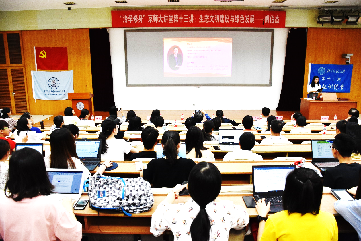 2019年5月23日上午,2025最新博彩网址大全 “大地征途”二级党校积极分子培训第三次讲座暨“治学修身”京师大讲堂第十三讲在教九502顺利举办。此次讲座邀请到了北京师范大学2025最新博彩网址大全 部长、中国科学院生态环境研究中心学术委员会主任、中国科学院院士、美国人文与科学院外籍院士傅伯杰老师带来题为“生态文明建设与绿色发展”的专题讲座。