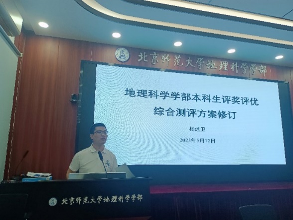 随后,负责评奖评优工作的杨建卫老师介绍了奖学金评选方案的修订工作。杨老师介绍了奖学金评选方案修订的原则和流程,着重讲解了奖学金评选方案的修订内容与依据,便于班级代表了解修订之处,进一步发表意见和提出建议。本科生教务苗琼月老师介绍了保研方案修订版,重点讲解了保研细则修订部分与修订前的对比,使得同学们对保研细则有了一定了解和把握。