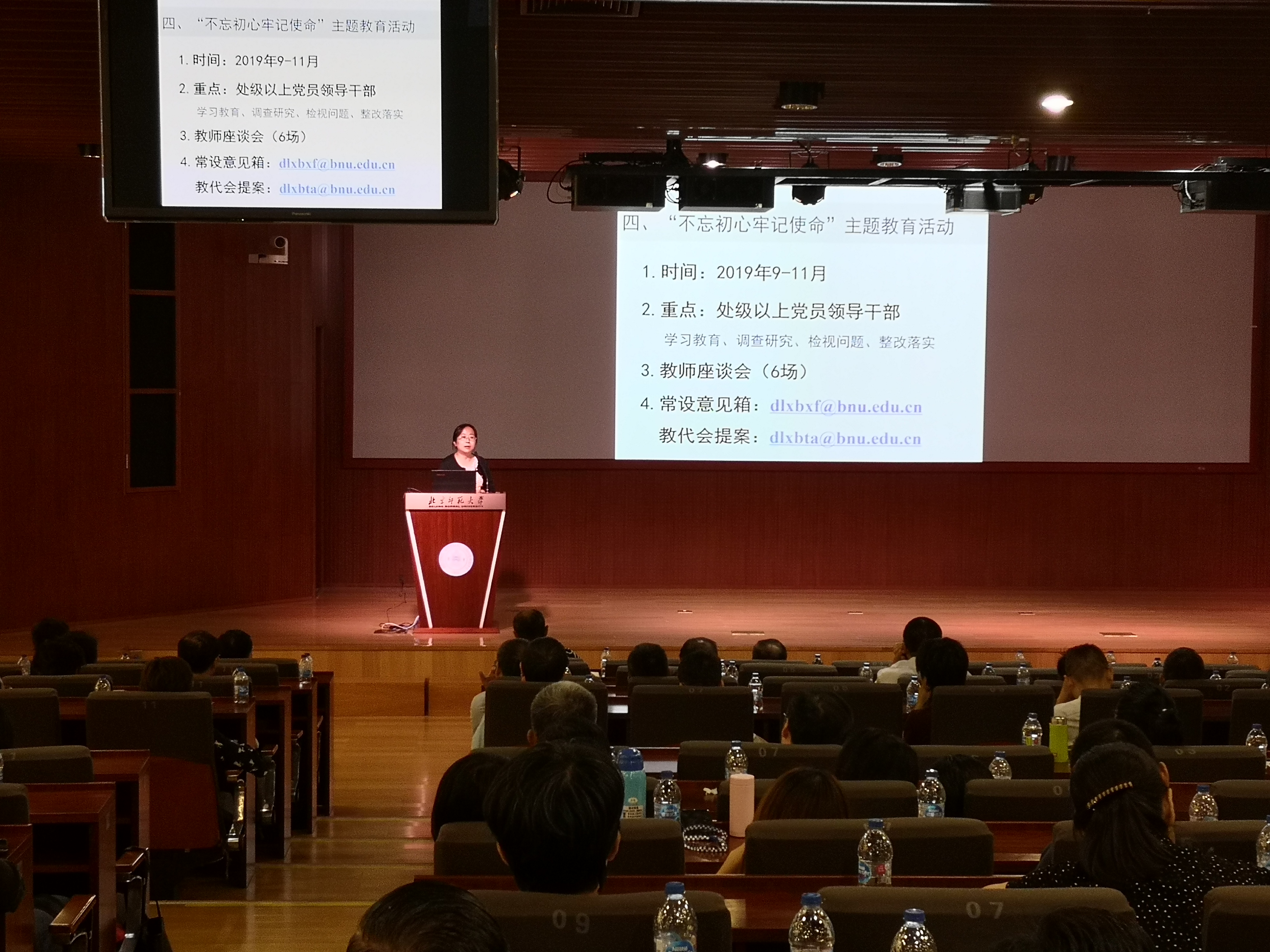 2019年9月24日下午,2025最新博彩网址大全 “不忘初心、牢记使命”主题教育动员会在京师学堂演讲厅举行。2025最新博彩网址大全 党委书记苏筠作动员讲话,对博彩网址 全体教师开展主题教育进行部署,博彩网址 党政领导、全体教职工参会。地理博彩网址 副部长周涛主持会议。