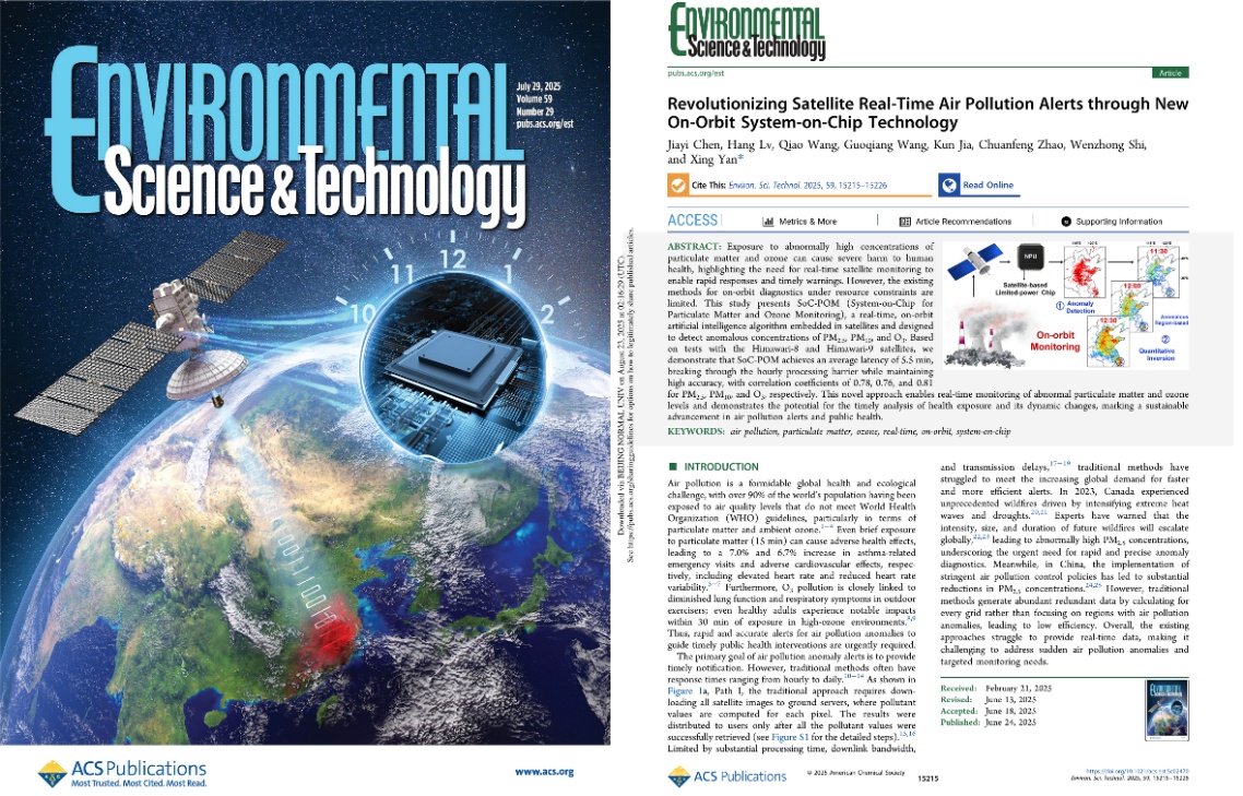 SoC-POM针对PM₂.₅、PM₁₀和O₃等典型污染物,具备异常快速检测与高精度反演能力,显著提升突发性大气环境事件的响应速度。该成果已在国际环境科学权威期刊Environmental Science & Technology发表,显示出国际学界与业界对该项工作的认可。研究结果不仅验证了在轨智能处理技术的可行性,也为卫星遥感异常监测向在轨智能化、即时化演进提供了理论与技术支撑。