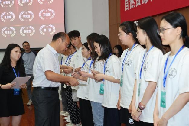 自然资源学院姜广辉院长(左)和地理学院自然地理研究所张卓栋所长(右)颁发优秀营员证书