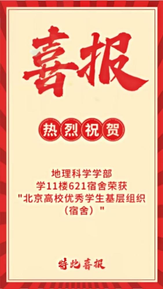 二、海淀校园学11楼621宿舍荣获“北京高校优秀学生基层组织(宿舍)”称号