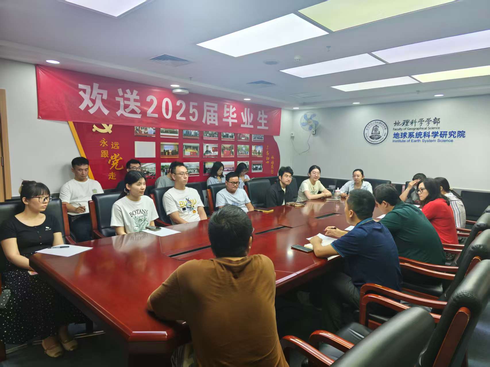 2025年6月17日上午,2025最新博彩网址大全 地球系统科学研究院2025届毕业生座谈会在学院会议室举行。院长孙诚教授、副院长吴国灿教授、毕业班班主任赵励耘、程华琼老师以及2025届硕士、博士毕业生代表共叙师生情谊,共话未来发展。会议由吴国灿副院长主持。
