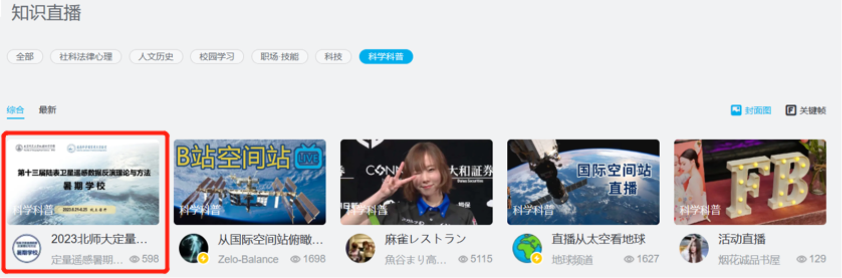 B站“知识直播-科学科普”专区综合排序位居榜首