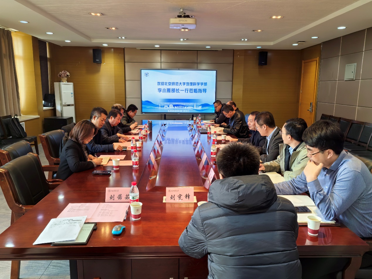 王云博书记主持会议,对李小雁部长一行的到来表示热烈欢迎。李君轶院长介绍了地理科学与旅游学院的基本情况、人才培养概况、科学研究进展及目前存在的问题,针对人才队伍培养、野外台站建设、重大项目培育等方面列举了学院下一步工作举措,希望在多方面得到北师大地理博彩网址 的支持。