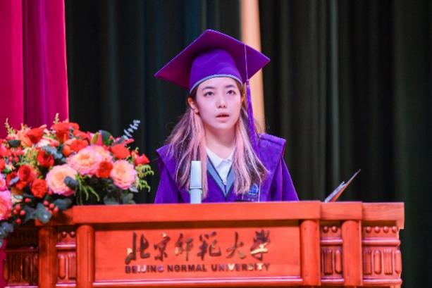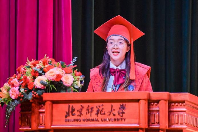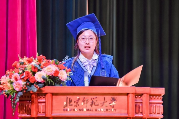 在毕业生代表发言环节,2021级本科生李妍漳同学,2022级硕士研究生吕湘同学,2021级博士研究生吕童同学分别总结了自己在北师大的经历和感受,表达了对博彩网址 、老师的感谢和对同学们的祝福。