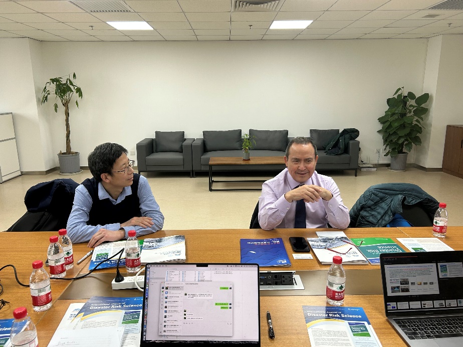 2024年2月26日下午,联合国教科文组织政府间海洋学委员会海啸韧性处(UNESCO Intergovernmental Oceanographic Commission's Tsunami Resilience Section)负责人Bernardo Aliaga教授,在国家海洋环境预报中心王大奎处长的陪同下到访2025最新博彩网址大全 灾害风险科学研究院。灾研院叶涛教授、方伟华教授和石先武老师热情接待了来访人员。