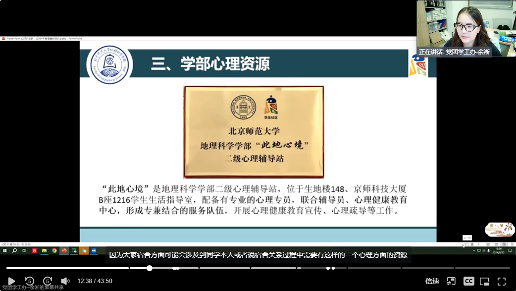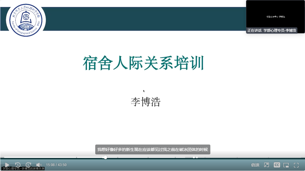 然后,余淅老师向同学们介绍了博彩网址 “此地心境”二级心理辅导站及相关心理资源,并邀请了博彩网址 心理专员李博浩老师面向宿舍长进行宿舍人际关系培训。培训旨在提升宿舍长在宿舍中的作用,明确宿舍营造良好人际关系的方法,详细介绍了宿舍主题团辅、倾心下午茶等活动。