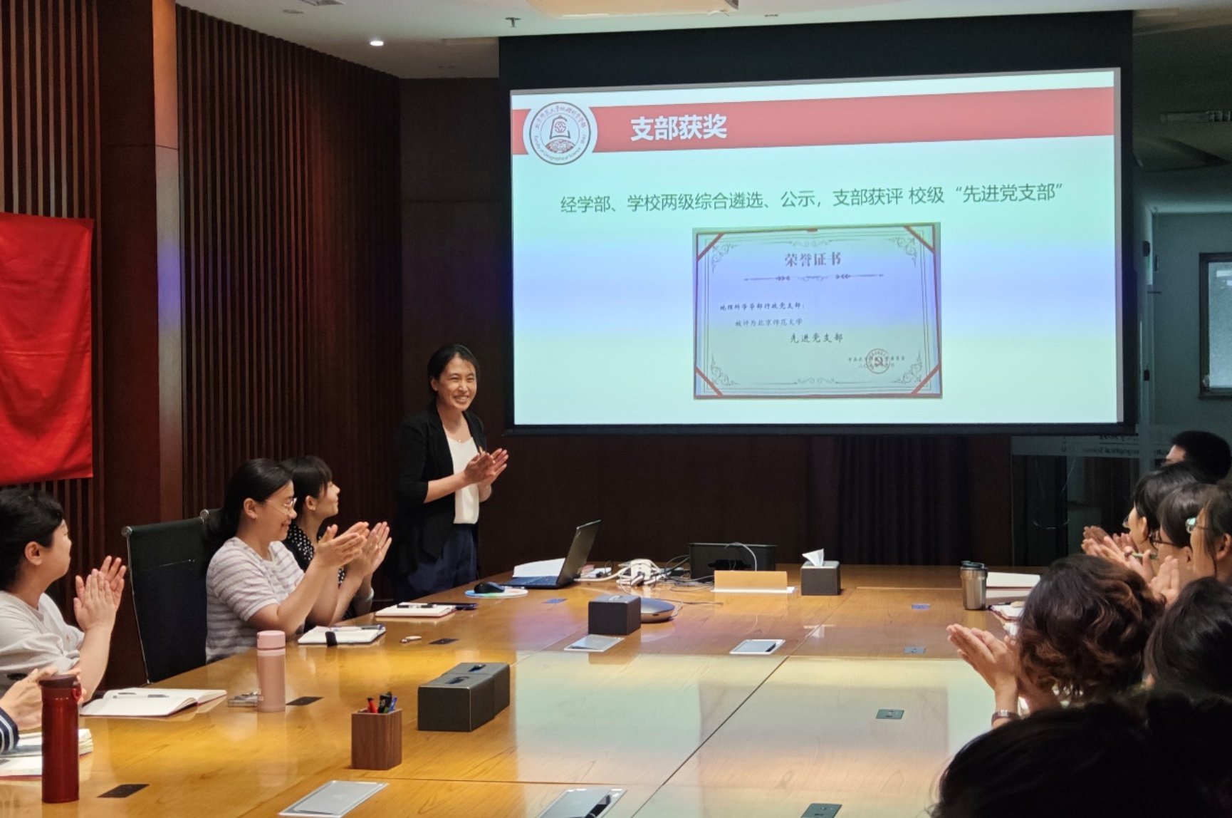会议第一阶段,林燕同志代表支委会向全体同志作了春季学期支部工作汇报,对支部开展的深入贯彻中央八项规定精神学习教育进行了总结,并对支部的优秀党员与积极投稿“趣生活”的同志进行了“活力先锋”奖励。支部委员杨逸姗同志对支部成员春季学期的学时情况进行了汇报。