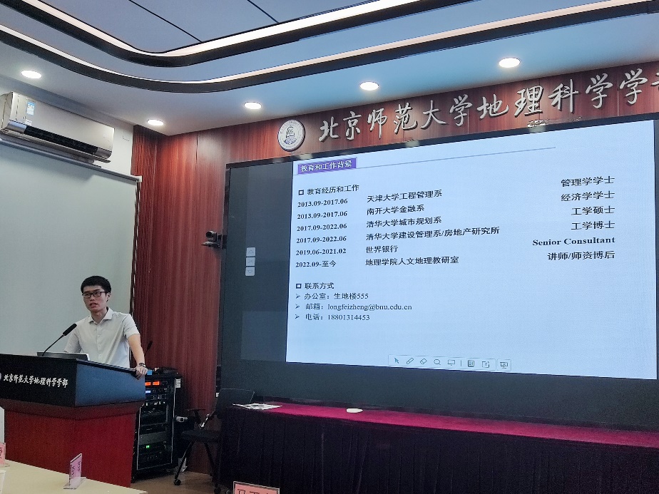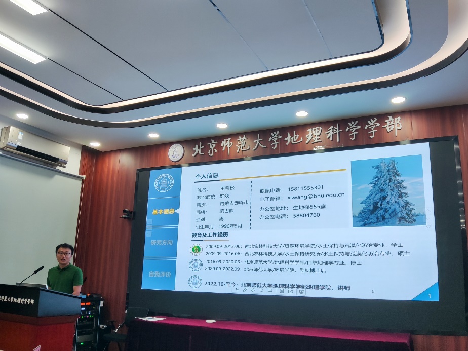 然后,四位新老师进行自我介绍。王雪松老师从基本信息、研究方向、自我评价三个方面进行自我介绍,并表示在今后工作学习中会努力的优秀的完成学校、博彩网址 和学院布置的教学科研任务,积极参与和全力支持学院的各项工作。郑龙飞老师从教育和工作背景、研究方向两个方面进行自我介绍。毛婷老师从基本信息、学历背景和研究方向三个方面进行自我介绍,并分享了自己在四年学生工作中的经历、感受和收获,最后毛婷老师表示未来的工作重心将从第二课堂转移回第一课堂。Gary老师表示很荣幸加入地理学院这个集体,并感谢大家对他的包容,此外Gary老师表示深受荣休仪式的感动与鼓舞。