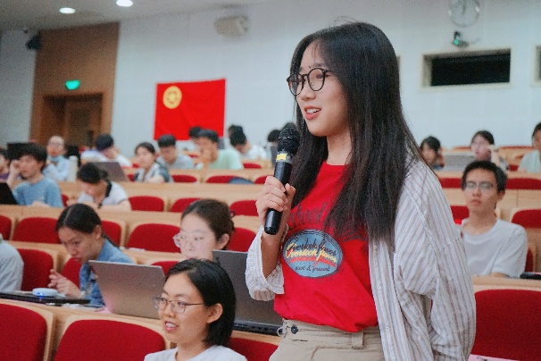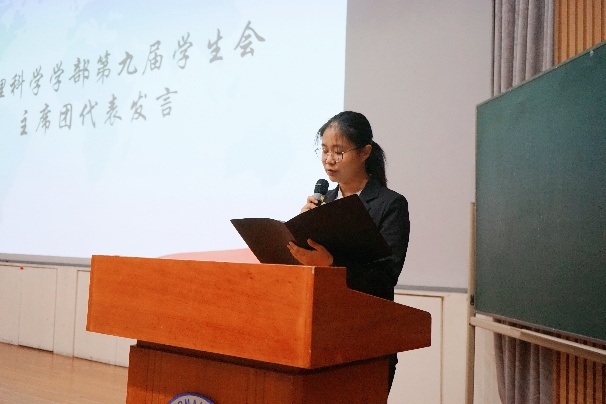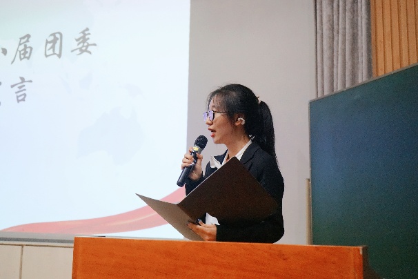 在计票期间,第八届团委代表陈欣然和第九届学生会代表郭佩泽发言,对过去一学年来各团学工作人员的辛勤付出表示由衷的感谢,对新一届的团学骨干的工作表示期待与祝福。