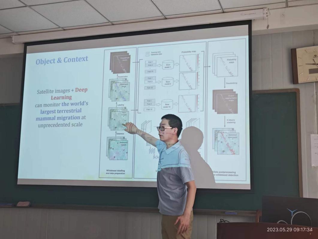 张策老师的研究聚焦于将深度学习技术应用在对地观测遥感及空间大数据的信息提取,表达与建模。本次讲座,张策老师重点分享了采用深度学习技术将非洲稀树大草原超大数量的迁徙角马从卫星影像上捕捉到,同时监测到一些具有生态学重要意义的迁徙格局和过程。此外,张策教授还分享了使用深度学习方法进行遥感影像分割、地理利用分类和变化检测等相关研究。