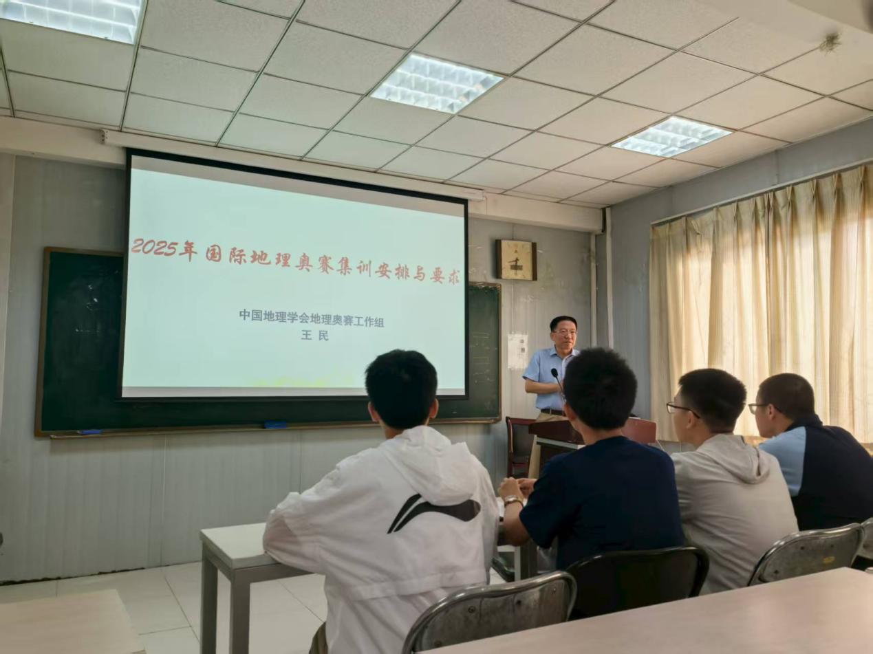 7月24日下午,中国地理学会常务理事兼执行秘书长王岱老师到集训现场看望参赛师生,代表学会向培训团队的辛勤付出表达了敬意,希望参赛队员放松心态、沉着应赛,展现出中国中学生良好的精神风貌、扎实的地理学素养和出色的综合能力。