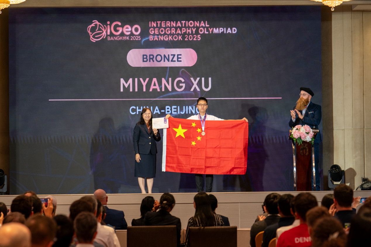 7月31日下午,第二十一届国际地理奥赛闭幕式在曼谷文华酒店顺利举行。中国(北京)队易子昂(陕西西安高新第一中学)和徐米扬(江苏苏州中学)喜获铜牌。次日,全体师生顺利回京,此次参赛行程圆满结束。2026年,第二十二届国际地理奥赛将在土耳其伊斯坦布尔举行,期待中国(北京)队将有更多收获!