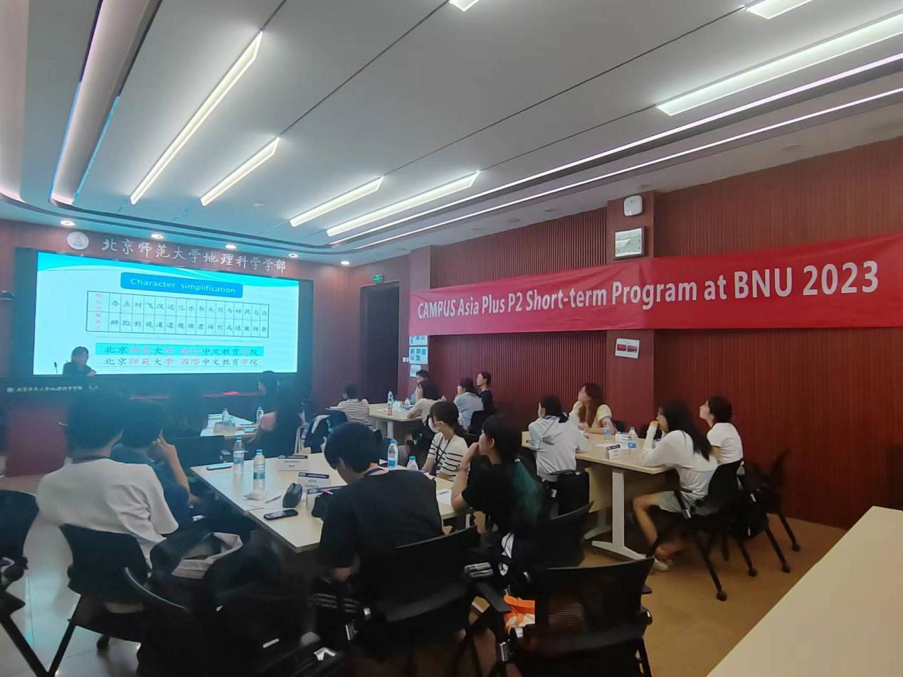 2023年8月24日8:00,项目举行开班仪式,博彩网址 党委副书记陈蓉蓉老师、外事秘书刘玉娇老师、合作学校的带队老师及20位学生参加了开班仪式。陈蓉蓉老师代表博彩网址 向参加本次短期项目的学生及带队老师表示热烈欢迎,询问了住宿及日常生活的相关事宜,刘玉娇老师就学校及博彩网址 的历史、现状和发展进行了简要介绍,并说明了注意事项。为促进交流,经过短暂的商讨后,学员们分成了四个小组,每组都包括中、日、韩的学生,便于后续的课程讨论和出行参观。大家对北京师范大学表现出很高的热情,期待在接下来的几天中有难忘的学习经历。