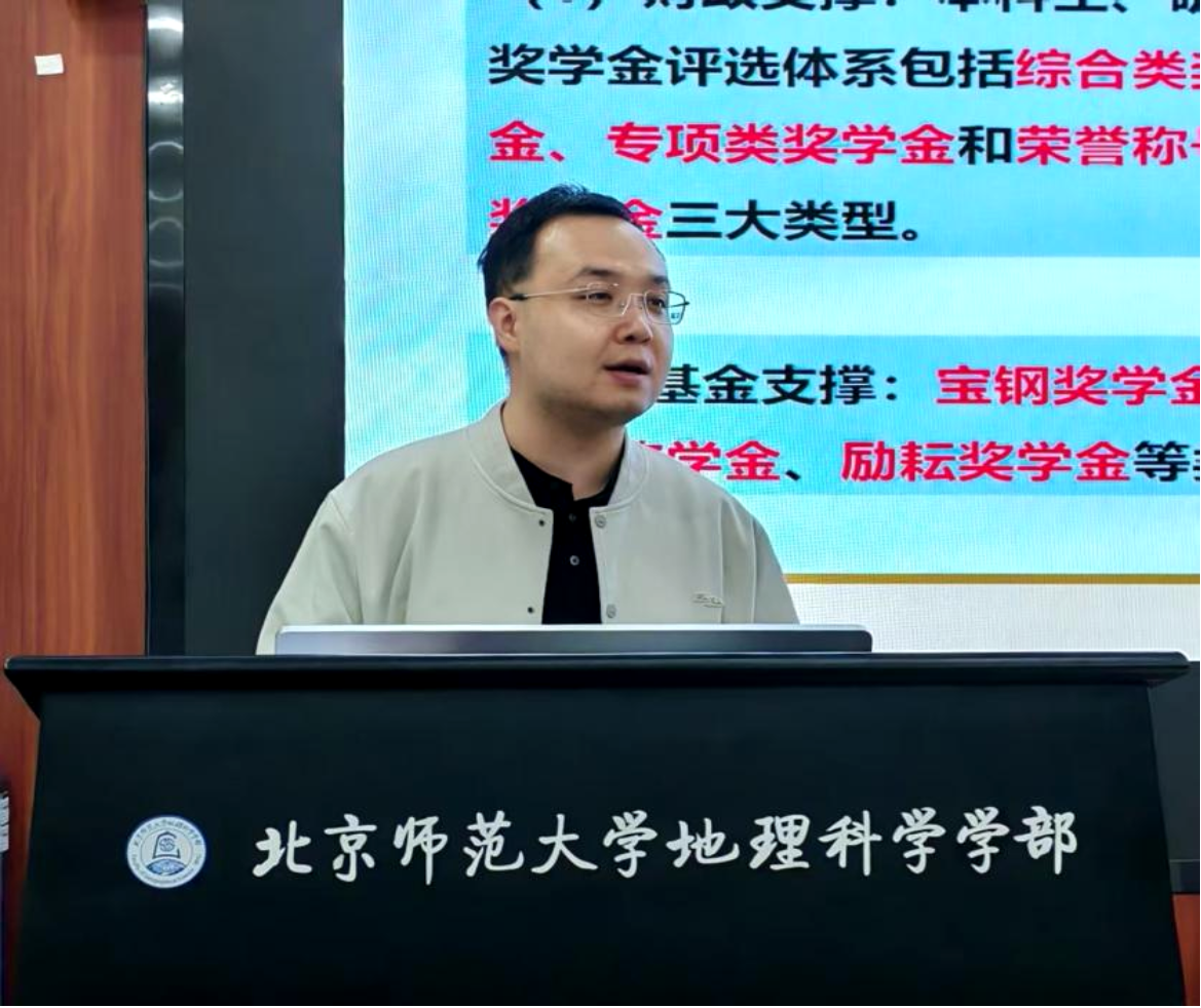 随后,李骜老师围绕奖学金评审工作进行政策宣讲。他结合《北京师范大学 2024-2025 学年奖学金评定细则》,从名额分配原则、申请条件标准、评审流程节点三个维度展开详解,特别介绍了评选规则与往年不同之处及调整原因。李骜老师同时预告了校级、部级奖学金申报与提交的时间节点,提醒各位班主任做好政策解读与具体指导工作。