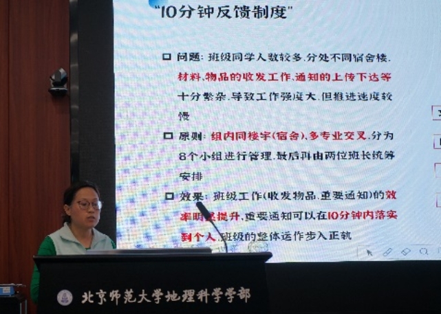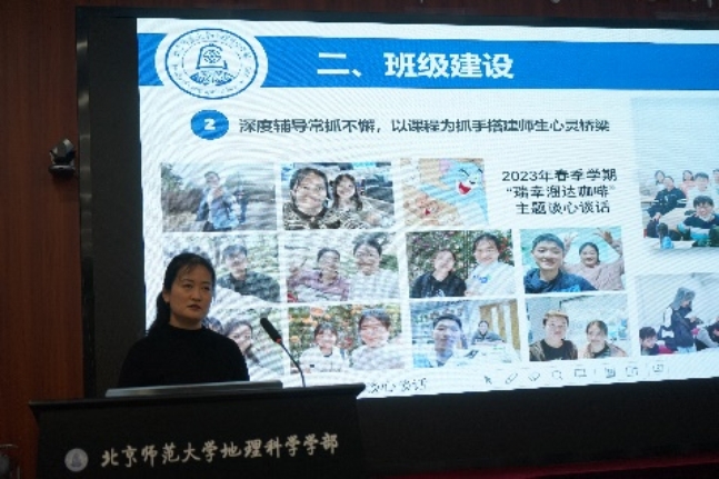 随后,班主任们通过PPT汇报方式开展答辩,未能参会的班主任录制了答辩视频。他们从班级概况、班级建设、班级管理、工作理念和常规工作等方面对过去一年的工作进行了总结和经验分享,对于如何有针对性地帮助学生处理好思想认识、价值取向、学习生活、择业交友以及如何发挥班主任角色的作用等方面进行了深入讨论。
