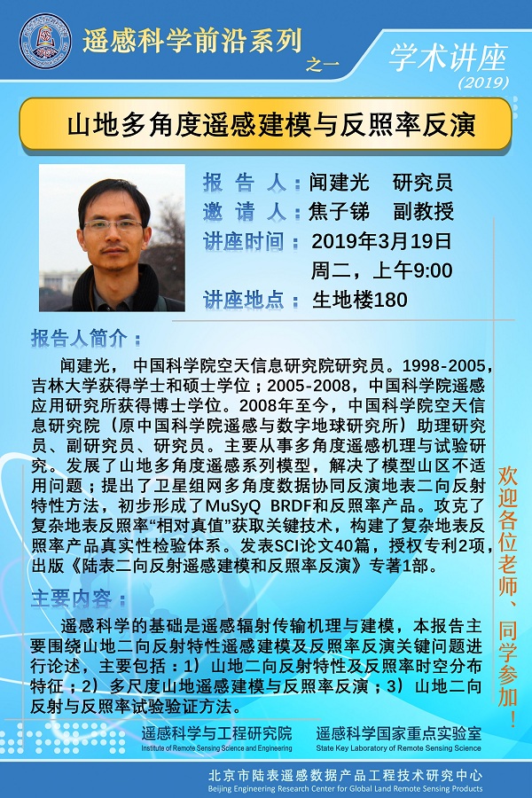 【3月19日讲座】闻建光,山地多角度遥感建模与反照率反演