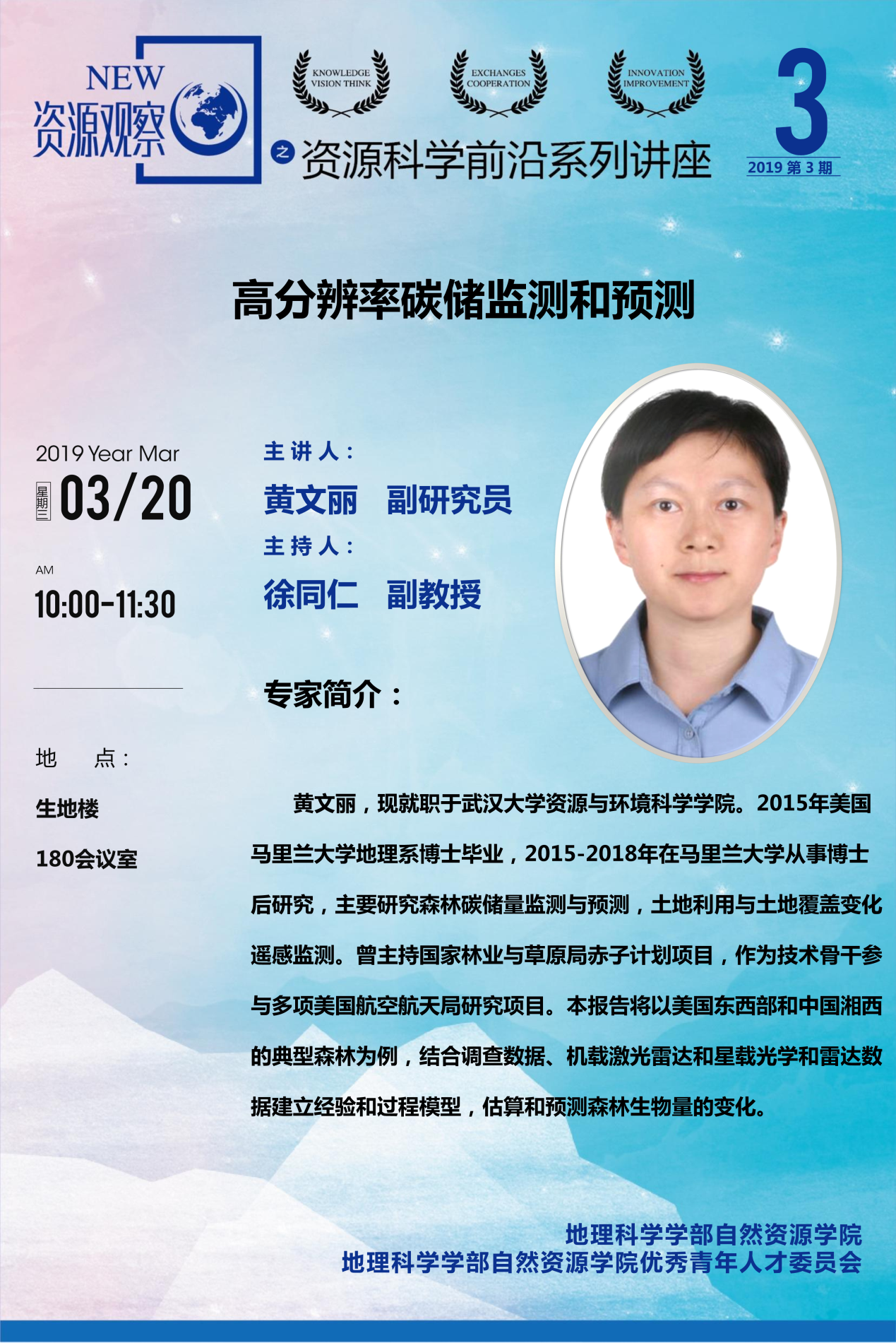 【3月20日讲座】黄文丽,高分辨率碳储监测和预测