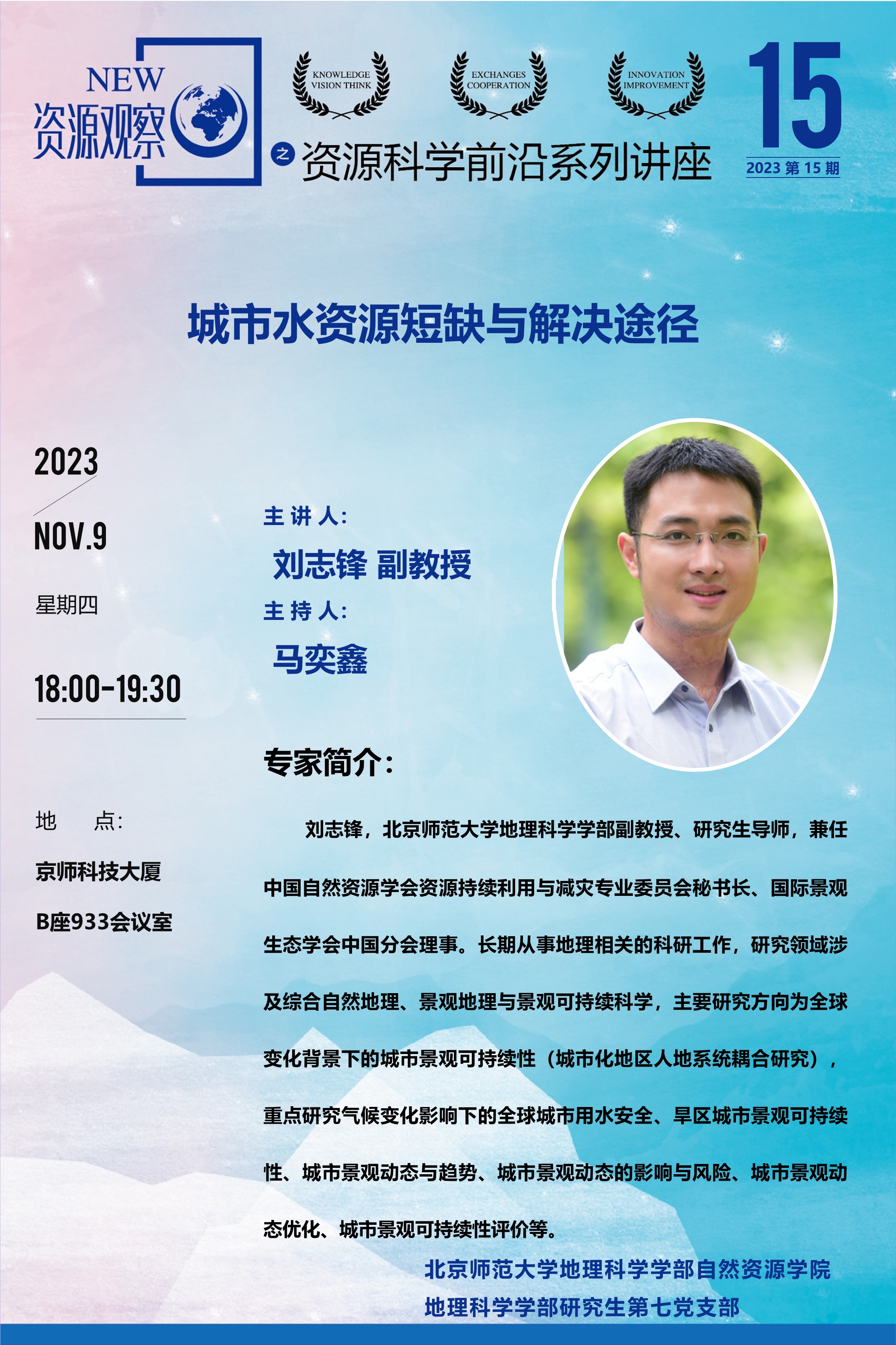 【11月9日】刘志锋 副教授,城市水资源短缺与解决途径